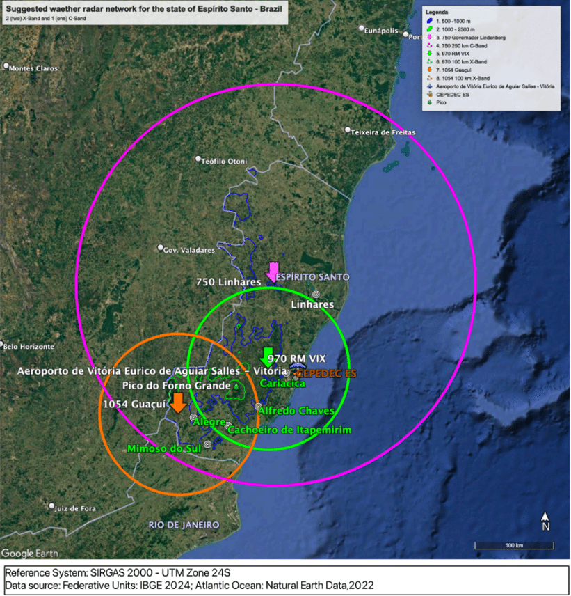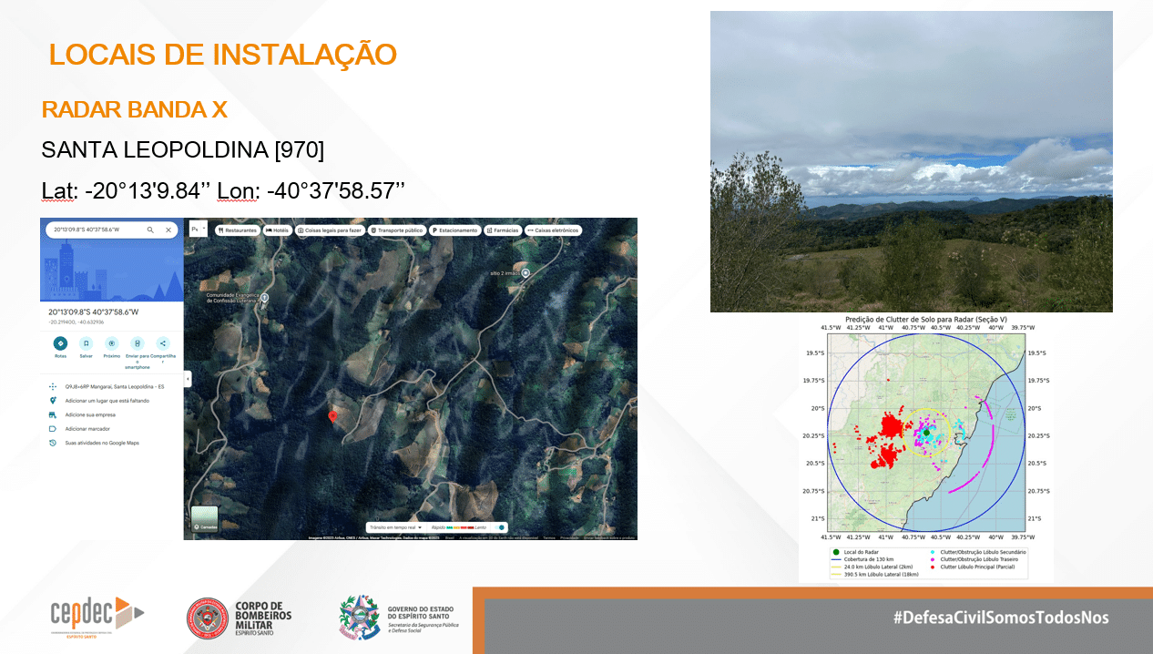 • Santa Leopoldina: radar de banda X, com alcance de 60 a 80 km, focado na Grande Vitória e região serrana.