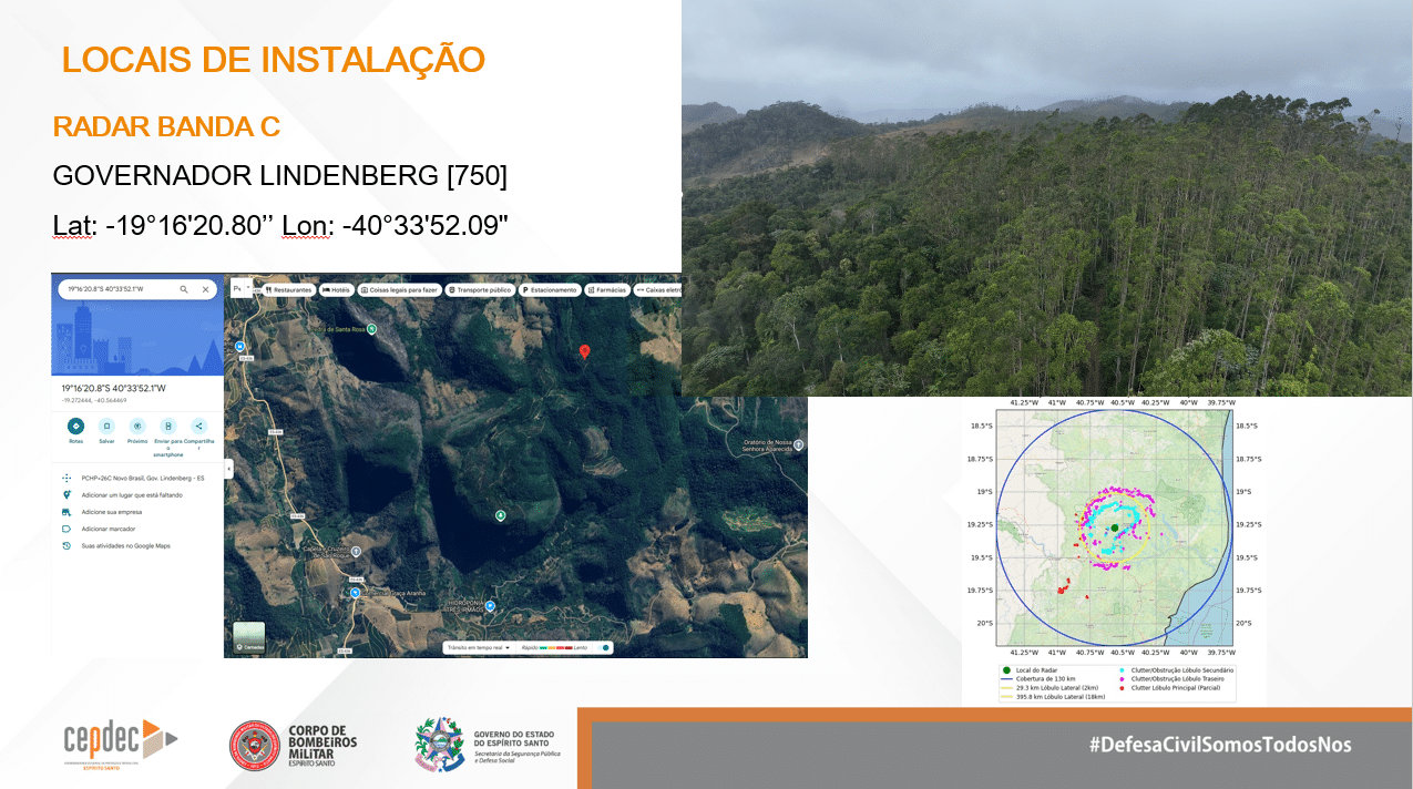 • Governador Lindenberg: radar de banda C, com alcance de até 250 km, cobrindo todo o estado.