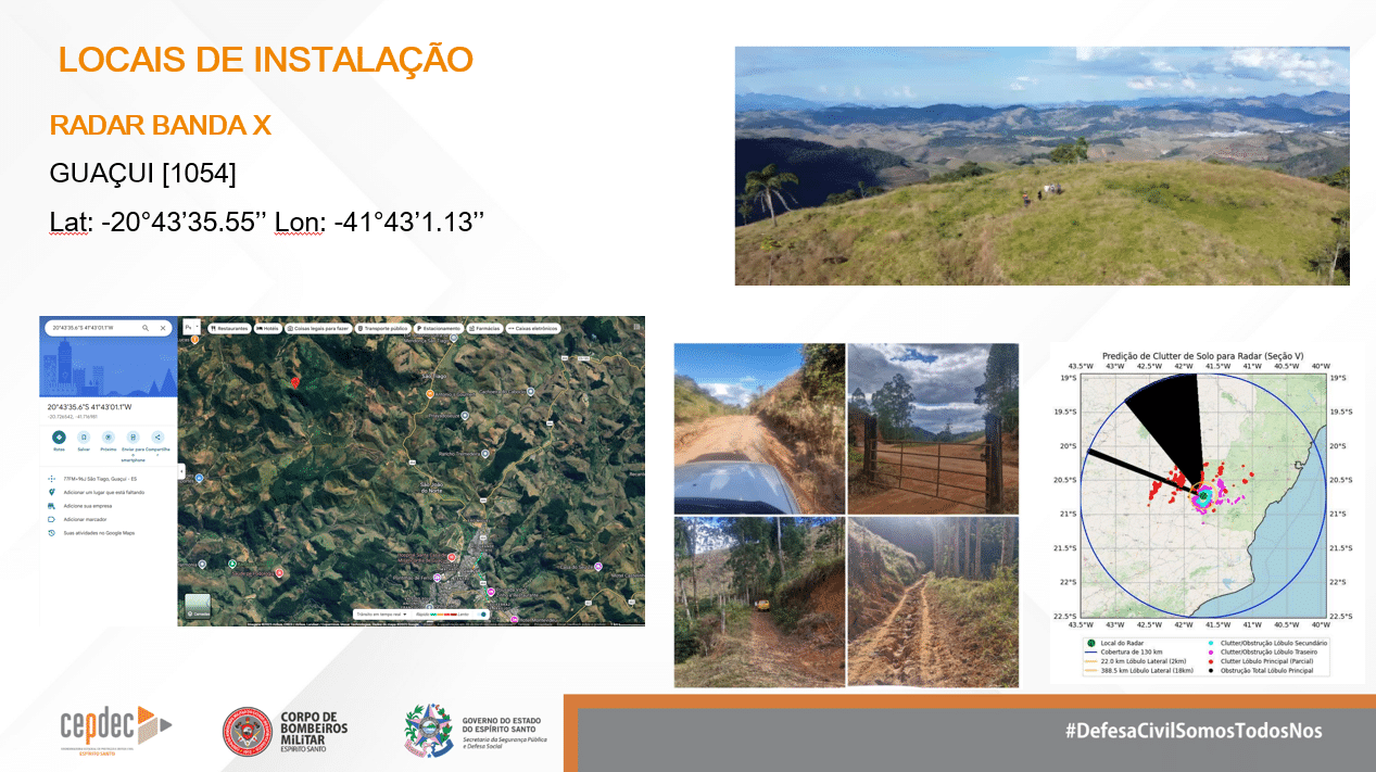 Os locais escolhidos para instalação dos radares foram apontados por um estudo técnico do Simepar (Sistema de Tecnologia e Monitoramento Ambiental do Paraná), que tem parceria com o governo capixaba. Os três radares serão posicionados em locais estratégicos: