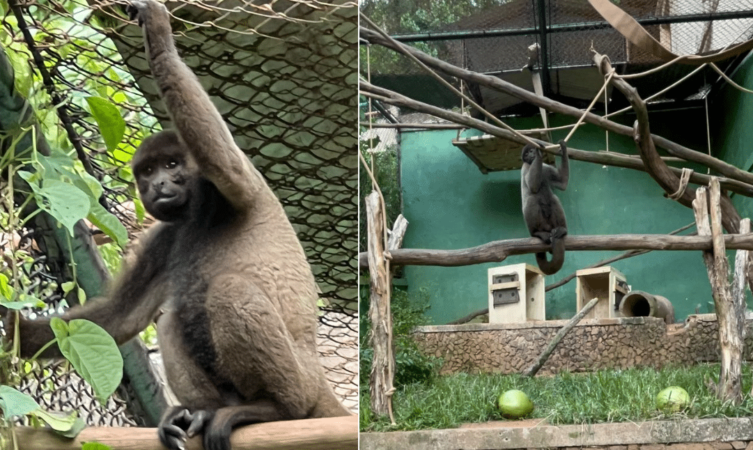 Dois macacos-barrigudos (Lagothrix lagotricha cana) resgatados no Amazonas, chegaram nesta semana ao ZooPark da Montanha, em Marechal Floriano, região serrana do Espírito Santo, onde passarão a viver e integrar programas de conservação da espécie.