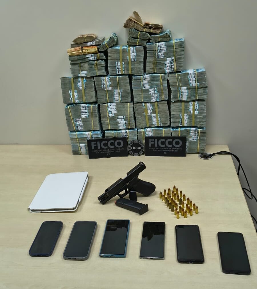 Com o grupo, as equipes apreenderam R$ 1.544.000,00 em espécie, além de uma pistola calibre 9 mm e diversas munições.